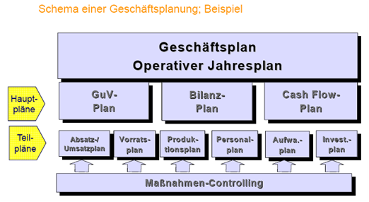 Strategieplanung, Mittelfristplanung, operative Jahresplanung (Geschäftsplan) auf der Grundlage von strategischen und operativen Zielen, quantitativer und qualitativer Natur (Balanced Scorecard), als Basis für die Unternehmenssteuerung.